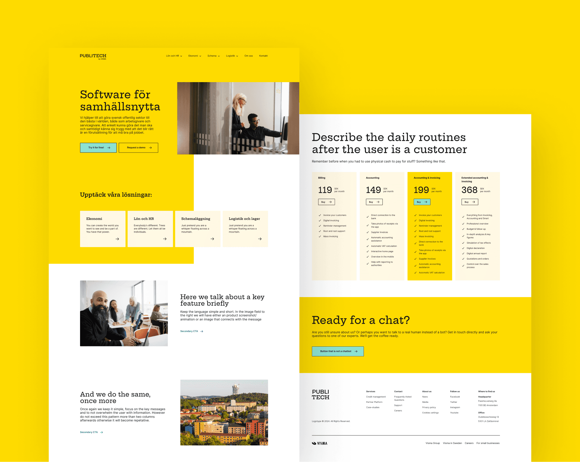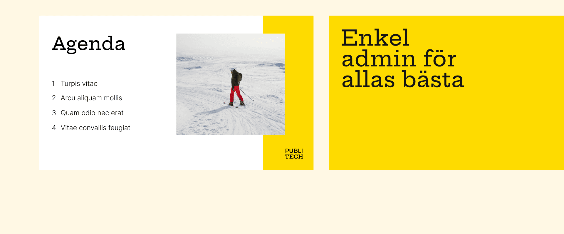 Utworzenie spójnej identyfikacji wizualnej, zgodnej ze strategią komunikacji, oddającej hasło "modern Sweden". Ukazanie Publitech jako nowoczesnego rozwiązania technologicznego, które chce służyć szwedzkiemu społeczeństwu i działać na rzecz wspólnego dobra poprzez wspieranie w codziennych zadaniach pracowników sektora publicznego.